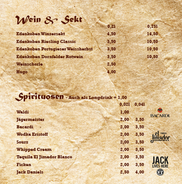 Folgend findet Ihr unsere Getränkekarte, einfach auf die Bilder klicken!
