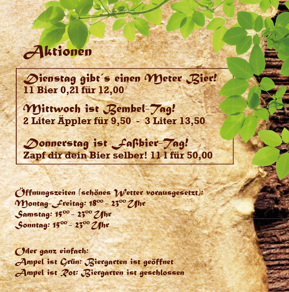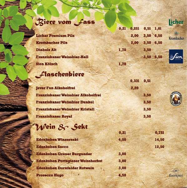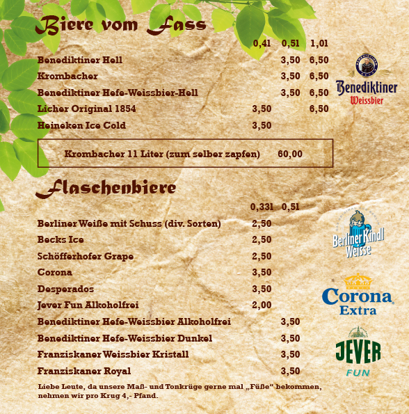Folgend findet Ihr unsere Karte für den Biergarten, auch hier einfach auf die Bilder klicken!